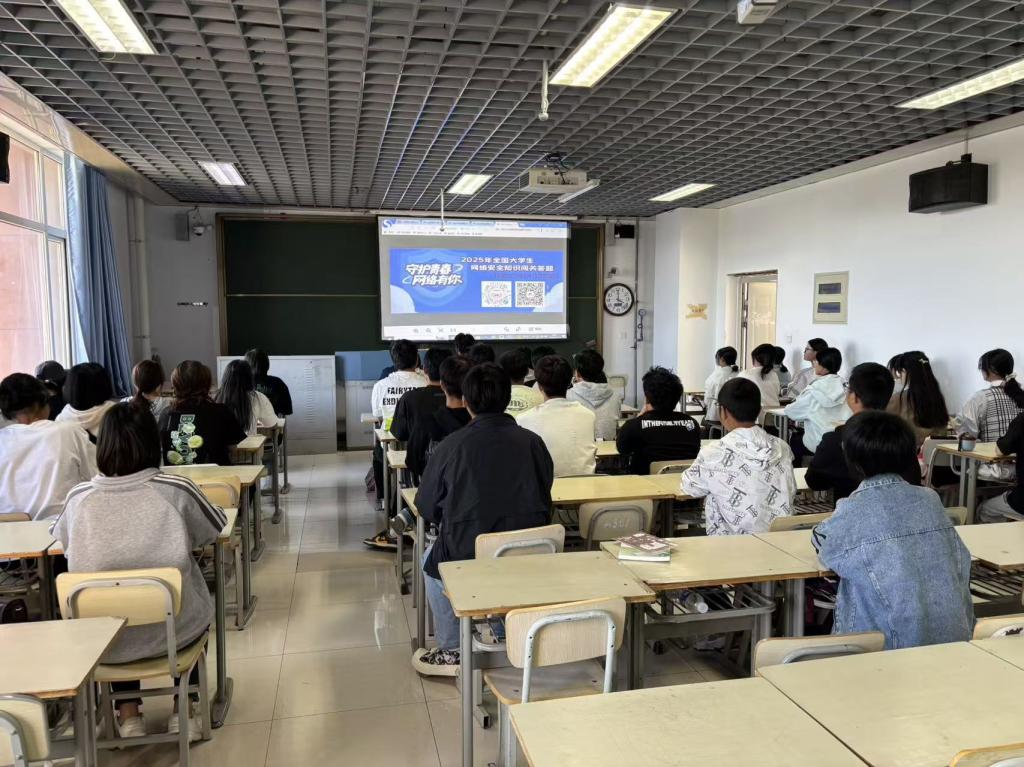 9月16日上午9点,学院组织2025级全体新生集中观看公安部刑侦局联合央视频开展的“大中小学生反诈大讲堂”线上直播“反诈第一课(大学篇)”。直播中,结合一个个鲜活的网络诈骗典型案例,新生们直观地了解到预防网络诈骗的知识和应对方法,为防范诈骗风险上了生动一课。同时,学院组织新生积极参与全国大学生网络安全知识竞答,以考促学,让新生在答题过程中深化对防范网络诈骗、非法校园贷、安全使用网络等知识的理解,进一步提升防诈骗意识。