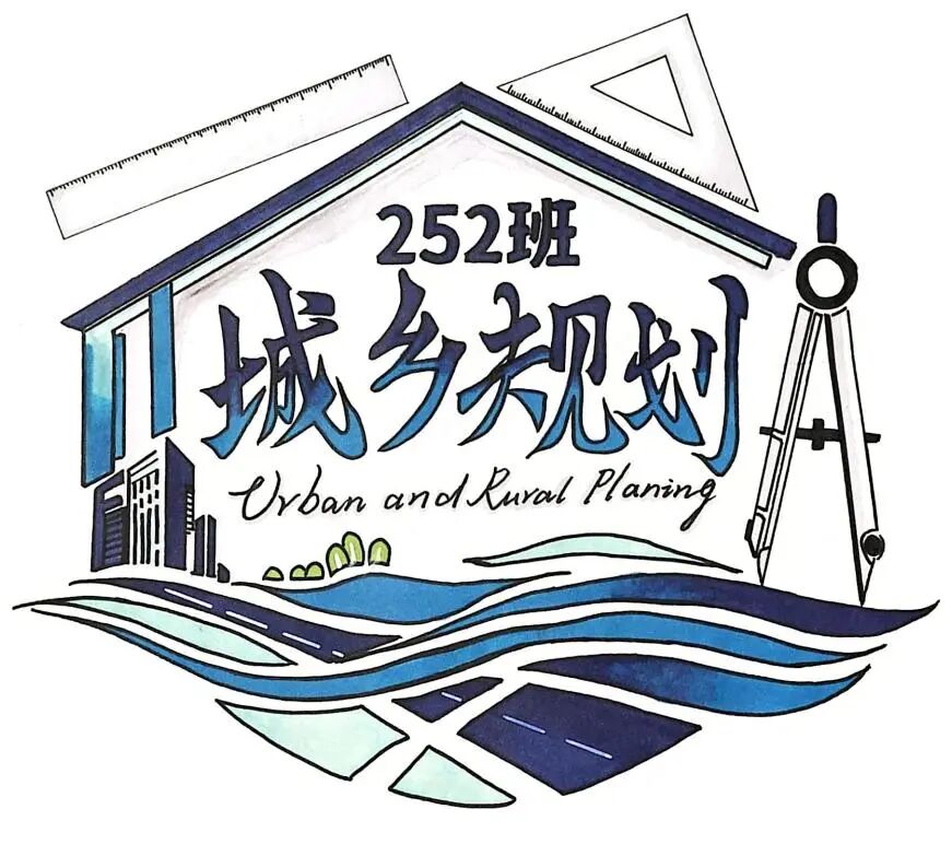 城乡规划252班班徽以房屋造型为主体,融合直尺、三角板、圆规等专业工具,体现规划学科的测绘与设计属性。下方道路、建筑、绿植元素,寓意在规划中践行城乡发展与生态共融的理念。“252”突出班级身份,整体设计彰显班级深耕城乡规划领域,以专业素养绘就城乡发展蓝图的决心。
