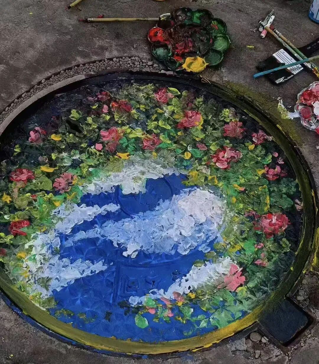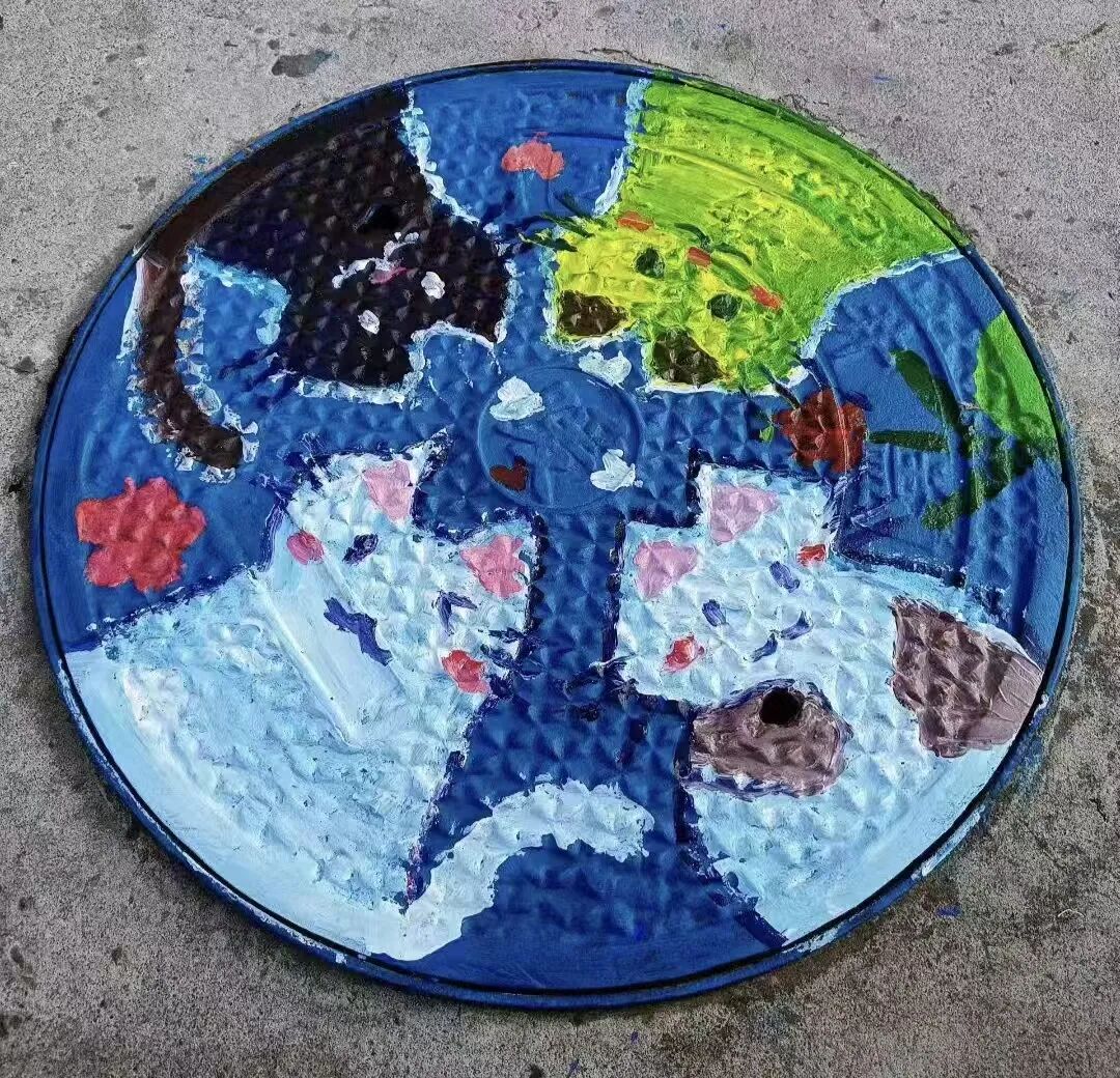 经过两天的不懈努力,两处小区的井盖、石墩子焕然一新,一幅幅主题鲜明的画作形成“地面画廊”,这不仅美化了环境,也传递了文明理念,获得周边居民的一致好评。